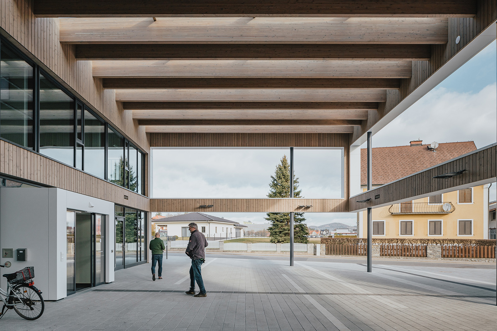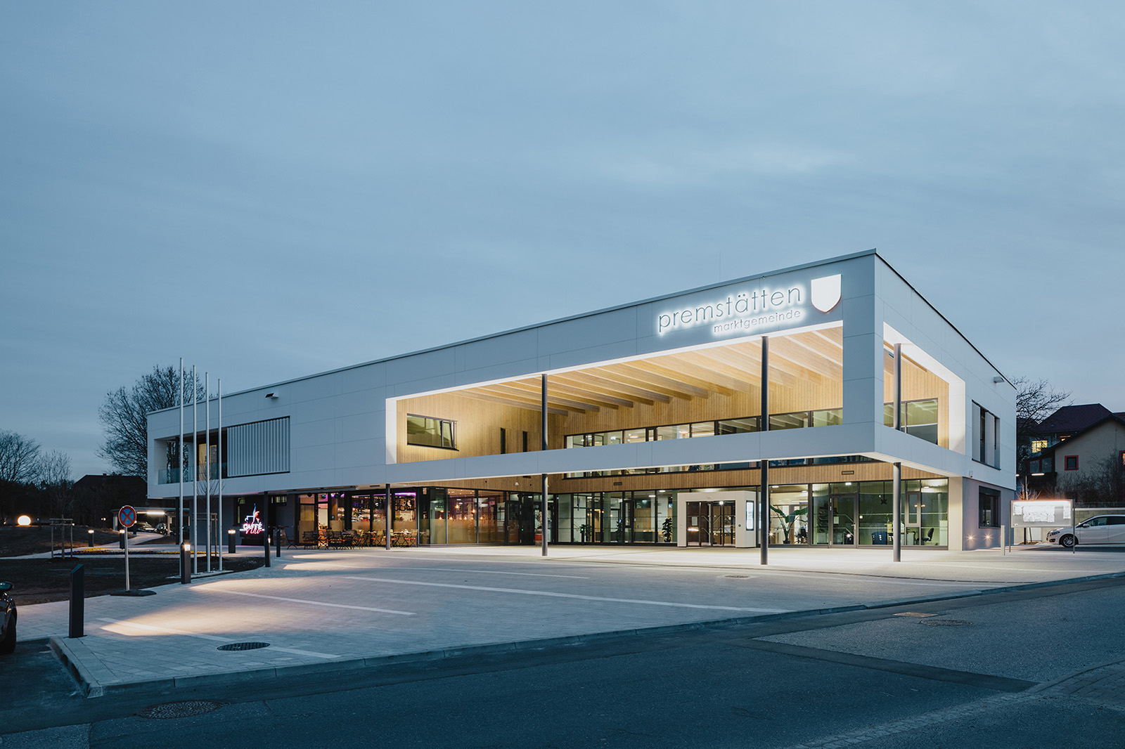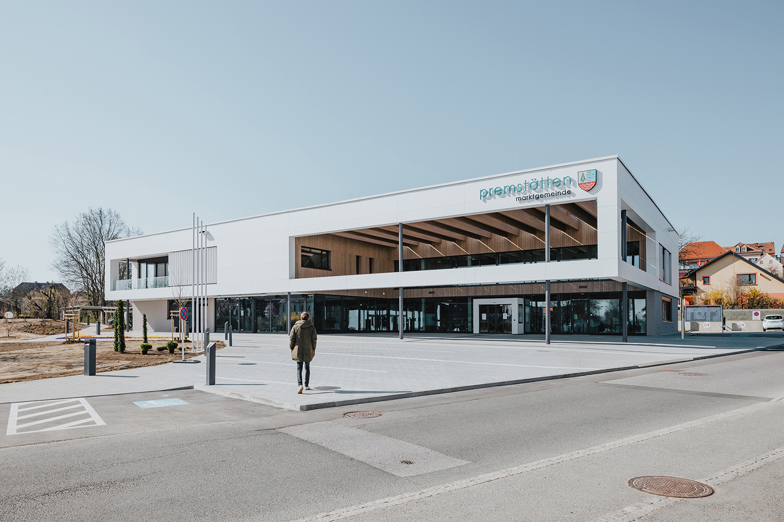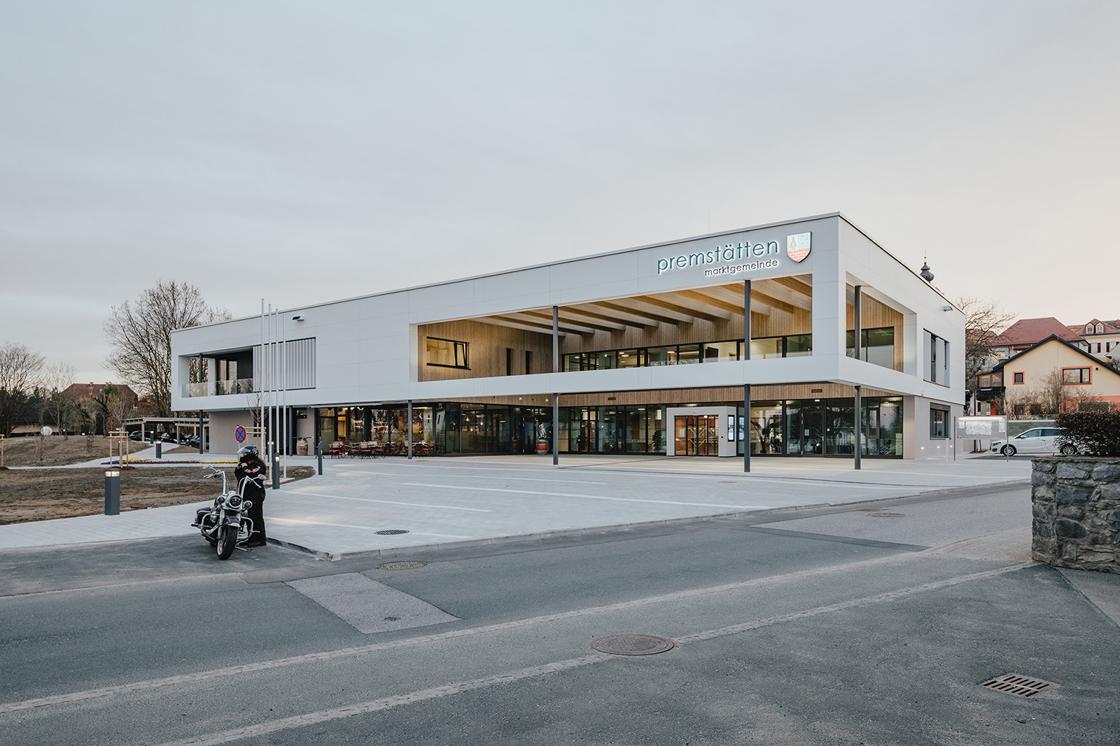 Zurückgesetzt von der Hauptverkehrsstraße der Gemeinde Unterpremstätten übernimmt das neue Rathaus die Funktion eines räumlichen wie sozialen Scharniers zwischen dem historischen, dörflichen Ortskern – alte Kirche, großzügiges Pfarrhaus, kleine Bauernhöfe, kleine Läden – und den neuen Wohnbau- und Gewerbegebieten der 2015 durch Gemeindereform zusammengelegten Gemeinden Unterpremstätten und Zettling.