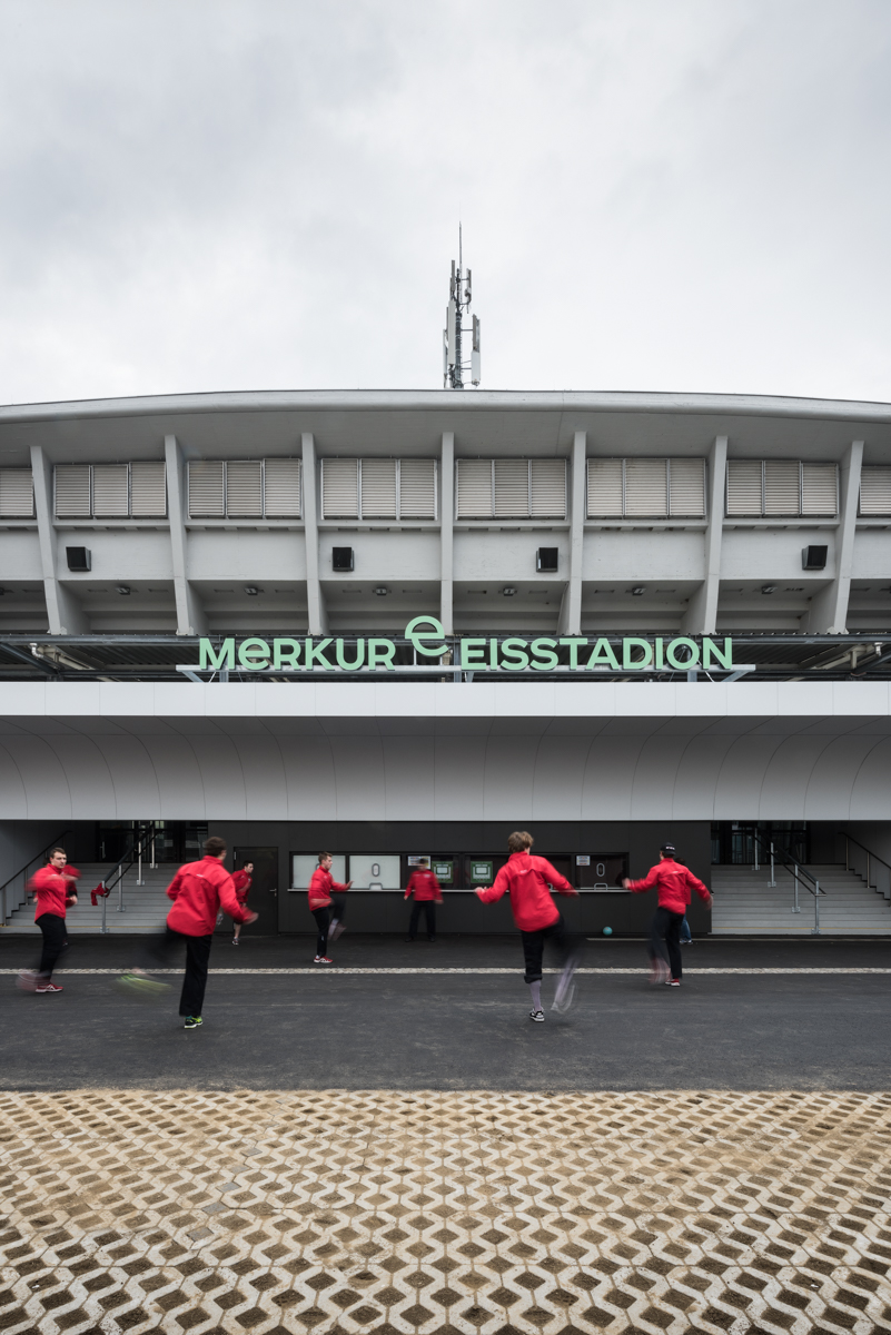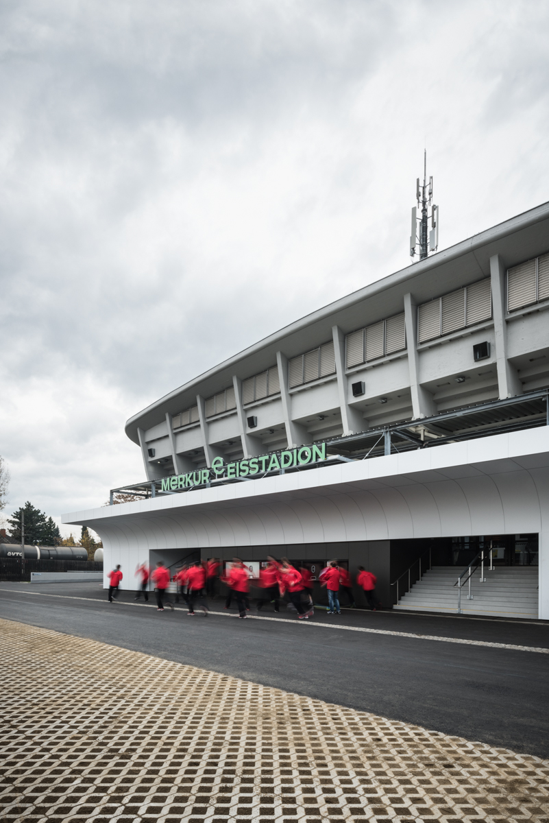 Im Süden von Graz, inmitten des Bezirkes Liebenau, entstand ab Mitte der 60er Jahre nach den Plänen der Architekten Wallner Leeb Huber etappenweise das Eisstadion Graz Liebenau. Anfangs nur als Freie Eisfläche konzipiert, wurde es sukzessive durch eine Publikumstribüne im Süden, der markanten Überdachung und schlussendlich der nördlichen Verbauung ergänzt. Der in die Jahre gekommene Bestand erfuhr für die 2017 in Graz statt findenden Special Olympics eine Totalerneuerung.