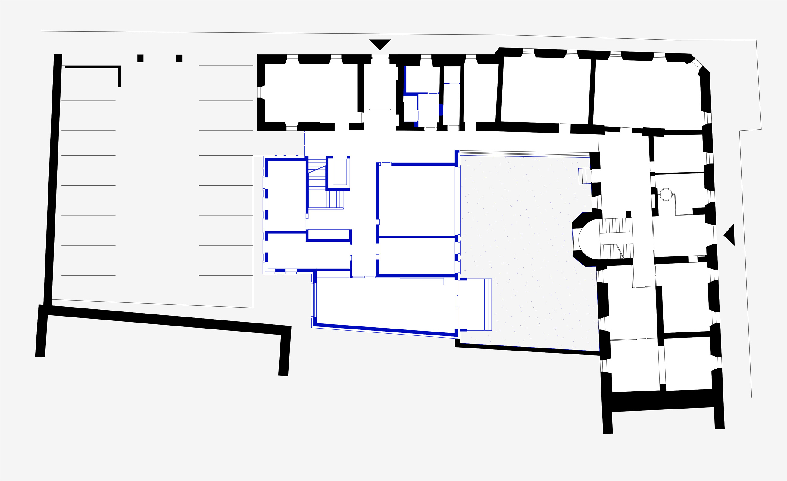 ... Der Frage, wie ein historisches Gebäude um der Zeit adäquate Elemente zu ergänzen sei, wobei im Innen‐ wie im Außenbereich eine klar ersichtliche Differenzierung alter wie neuer Substanz gegeben bleibt, begegneten wir in unserem Entwurf mit Überlegungen, die inzwischen auch in der Architektur als Sublimation bezeichnet werden.